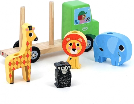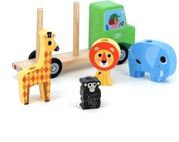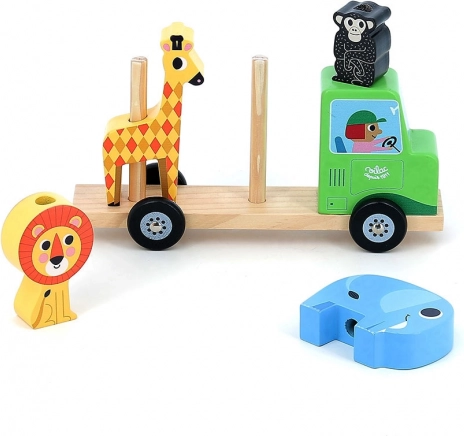 Dette unikke trælegetøj i form af en sæt-på-lastbil kombinerer bevægelsesmidler og skønne safaridyr. Dit barn vil have masser af sjov med at genkende dyrene og finde på historier. Legetøjet er ideelt til at udvikle finmotorik, fingerfærdighed og hånd-øje-koordination.