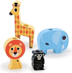 Oplev det sjove trælegetøj med safari-motiv, designet af den svenske kunstner Ingela P. Arrhenius. Legetøjet er inspireret af Montessori-principper og støtter udviklingen af finmotorik og kreativitet hos dit barn.