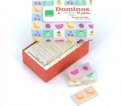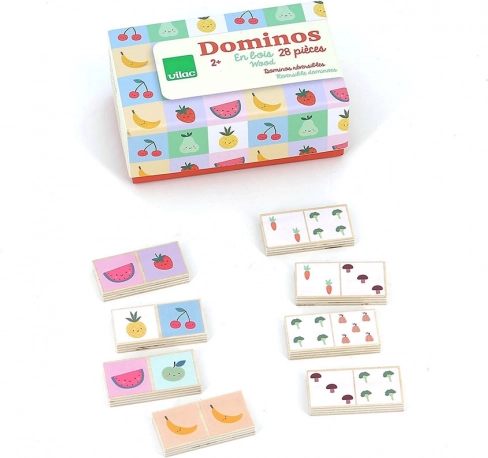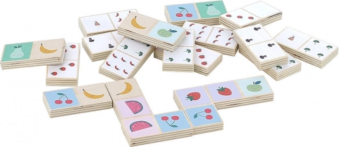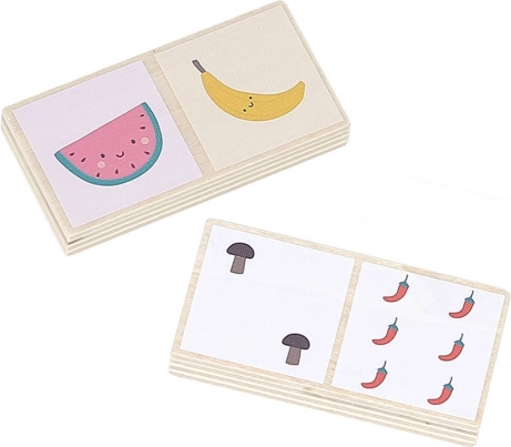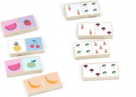 Trædomino med frugt- og grøntsagsmotiver er et fantastisk spil for børn, som ikke kun stimulerer hukommelse og opmærksomhed på en sjov måde, men også udvikler finmotorik og hånd-øje-koordination.