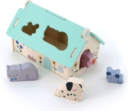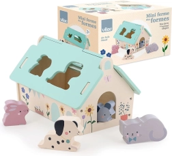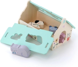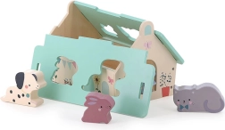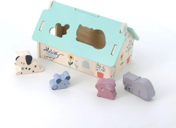 Dette smukt udførte træhus i blide farver er designet af Sarah Betz og har et aftageligt tag med formede åbninger til at indsætte dyrefigurerne. Det er en tidlig Montessori-inspireret legetøj, som motiverer børn til at udvikle mange færdigheder: