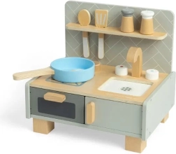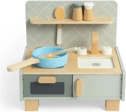 Det kompakte design i bløde, neutrale farver passer perfekt i ethvert børneværelse eller legeområde. Det er lavet af FSC®-certificeret træ og malet med ugiftige farver, hvilket sikrer bæredygtig og sikker leg for børn fra 3 år. Ud over underholdning fremmer dette køkken fantasi og forestillingsevne, mens børn efterligner køkkenroller.