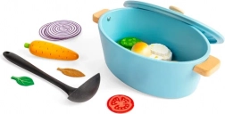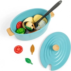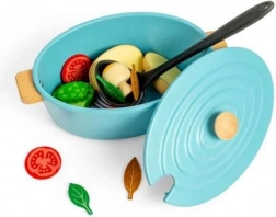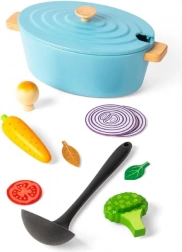 Tilbered lækker mad til familien med et børne-ovnfast fad og masser af tilbehør. Dette legetøj tilbyder mange typer grøntsager i træ og hjælper børn med at udvikle sociale og kreative færdigheder.