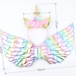 Regnbuevingerne fastgøres nemt med elastiske stropper, hvilket giver fri bevægelighed. Vingernes farver udstråler magien fra en ægte enhjørning.