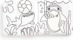Bogen indeholder enkle skitser af havlivet, som hajer og koraller, hvilket hjælper børn med at opdage havets vidundere.