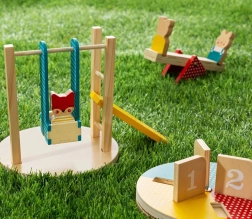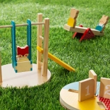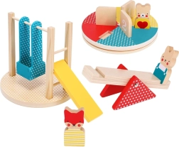 Forbered dine børn på uforglemmelige øjeblikke på legepladsen med dette træsæt. Indeholder tre dyrefigurer, der bringes til live på en fantasifuld legeplads:
