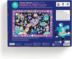 Dyk ned i rumdrømmenes verden med vores puslespil 'Find og Søg'. Når det er samlet, kan børn teste deres observationsfærdigheder og opmærksomhed ved at finde mere end 40 genstande på det samlede billede. Dette puslespil er et fremragende værktøj til udvikling af rumlig tænkning og hånd-øje-koordination, som understøtter naturlig og sjov læring.