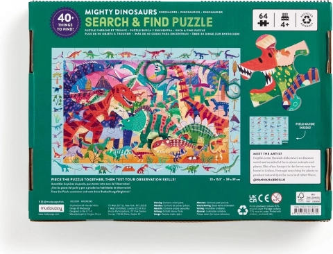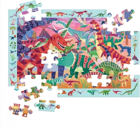 Træd ind i dinosaurernes fantastiske univers med Puslespil Majestætiske Dinosaurer. Dette puslespil med 64 brikker byder ikke kun på sjov under samlingen, men også ekstra eventyr, når der skal findes mere end 40 skjulte genstande og skabninger i billedets kant. Børn træner således både finmotorik og deres evne til opmærksom iagttagelse.