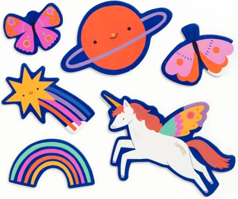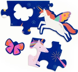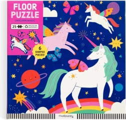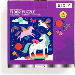 Oplev den vidunderlige verden af enhjørninger med et gulvpuslespil på 25 brikker, der indeholder sommerfugle, stjerner og kometer. Ekstra store, præcist udskårne brikker er velegnede til små børnehænder og træner hånd-øje-koordination. Samtidig udvikler børn problemløsning og finmotorik.