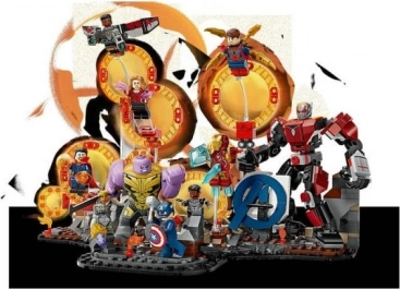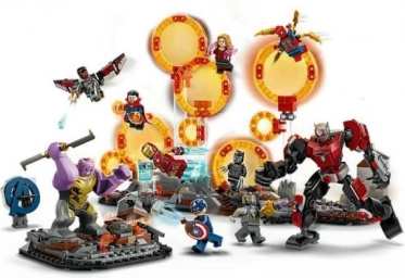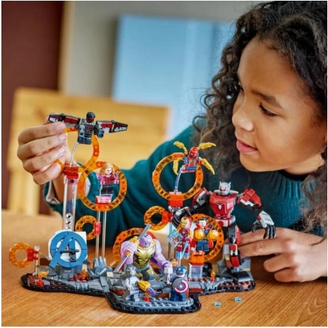 Genoplev den afgørende kamp fra MARVEL Studios’ Avengers: Endgame. Sættet indeholder ni minifigurer – Captain America (med skjold), IRON MAN MK85 (med sværd og skjold), CHITAURI (med skulderkanon), ANT-MAN, SCARLET WITCH (med effektdel), DOCTOR STRANGE, IRON SPIDER (med 4 bevægelige bagarme), BLACK PANTHER og FALCON (med to skydere) – samt en stor figur af THANOS og en fuldt posérbar Ant-Man-mech.