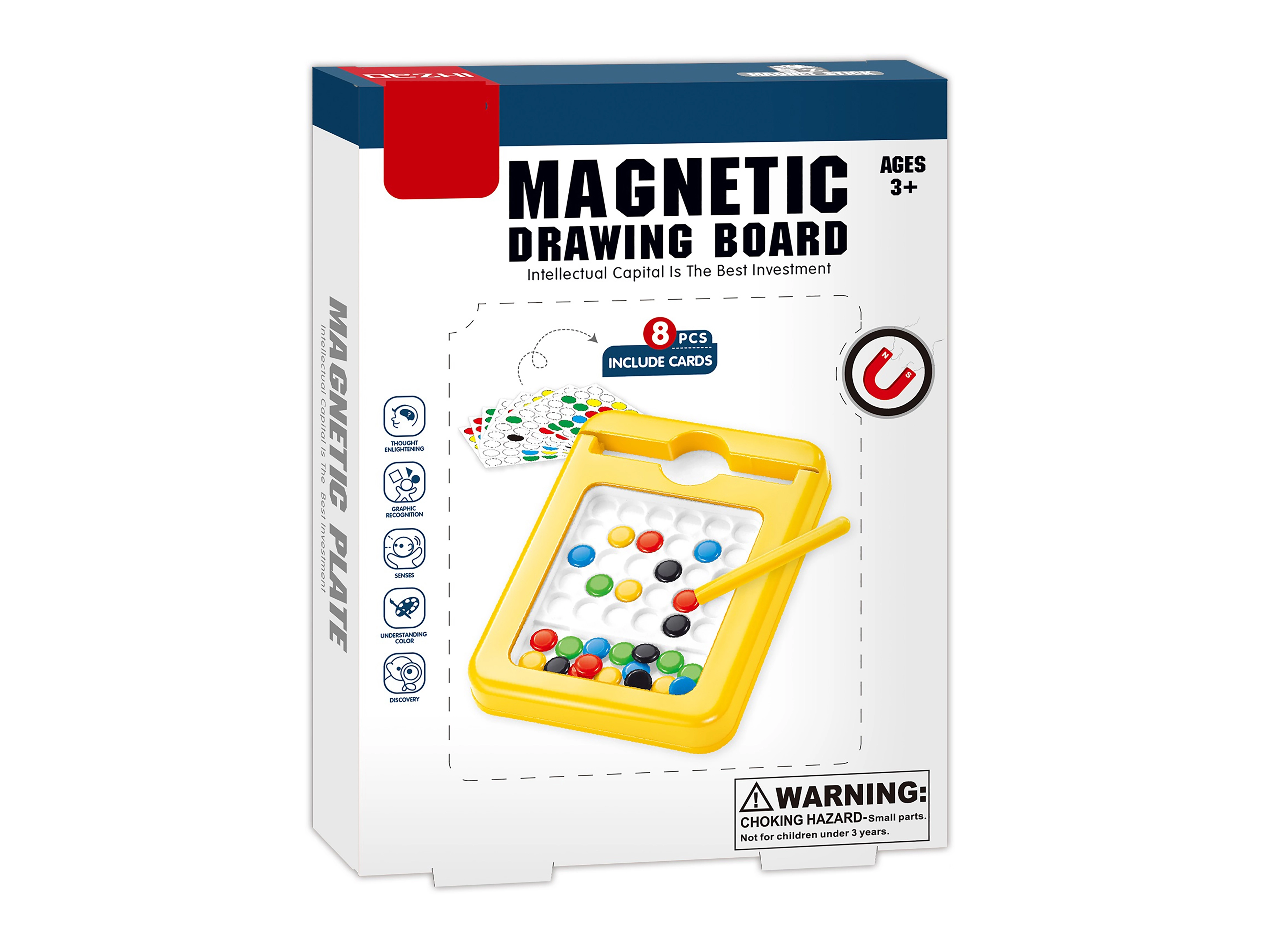 Tavlen med farvede magneter er et sjovt og lærerigt redskab for børn, der gør det muligt kreativt at udvikle deres færdigheder og fantasi. Indeholder alt, hvad der er nødvendigt til timevis af underholdning.