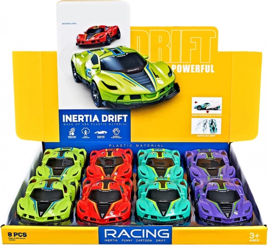 Driftende friktionsbil med målene 15,5 x 8 x 4 cm er en ideel gave til alle fans af actionfyldt kørsel. Denne model fås i fire forskellige farver – grøn, rød, blå og lilla.
