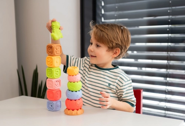 Montessori byggesæt og sansepyramide til børn. Sikker til leg i vand, fremstillet i Tjekkiet, egnet fra 6 måneder.
