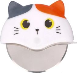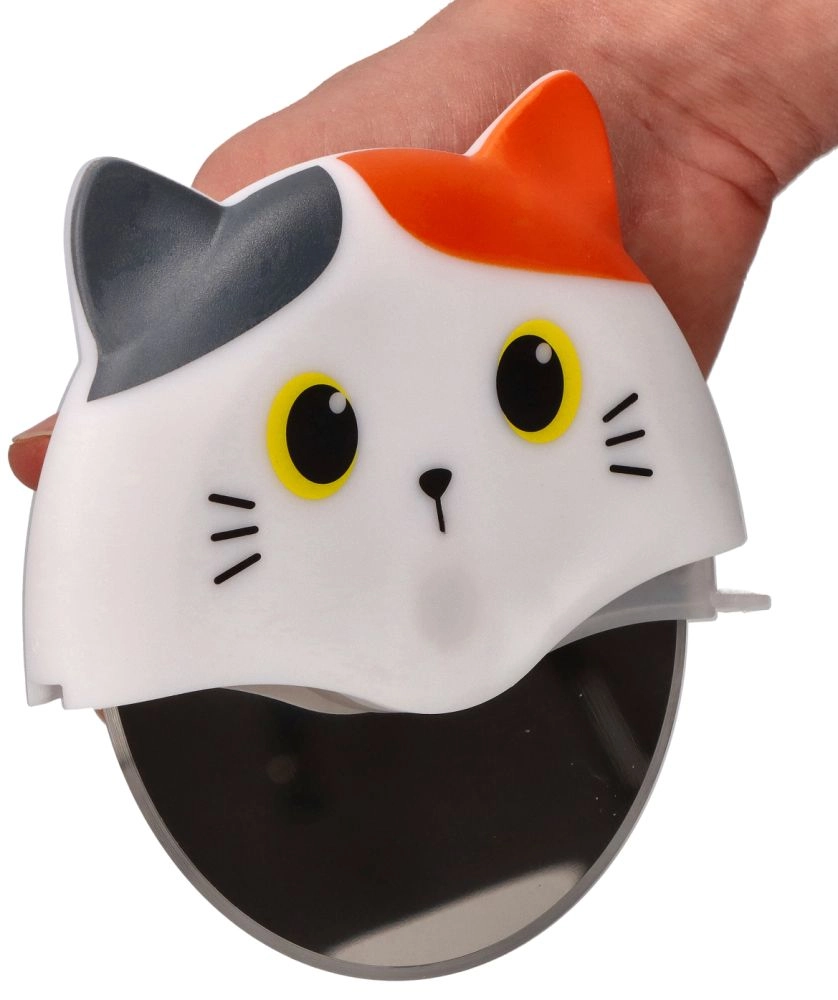 Sød og praktisk katteformet pizzaskærer, der kombinerer en skarp skive i rustfrit stål med et behageligt plastikhåndtag. Med en diameter på 14 cm glider den let gennem både skorpe og ost og sikrer hurtig og sikker skæring af dine yndlingspizzaer, fladbrød og deje. Godkendt til kontakt med fødevarer.