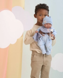 Dette nøje afstemte tilbehørssæt til babydukke i størrelsen 40–42 cm rummer alt, hvad barnet behøver til daglig udklædning og hygge. Du finder 2 stykker tøj, en praktisk hagesmæk og en sød krammeklud, som giver rollelegen som babypleje et endnu mere realistisk præg.