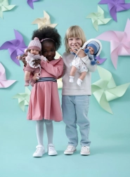 Dukken Lola er 38 cm høj og er håndlavet i Spanien. Hoved og lemmer er lavet af høj kvalitet blød vinyl, hvilket sikrer en behagelig berøring for små hænder.