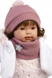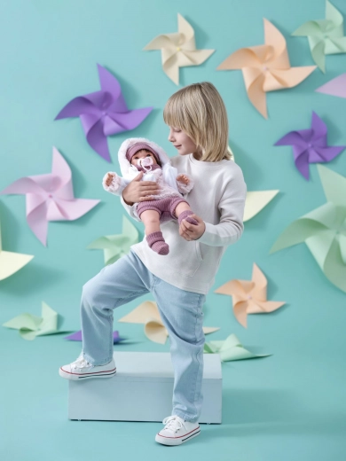 Fjern blot sikringen, og dukken fungerer med det samme! Når sutten tages ud af munden, begynder dukken at sige enkle ord og lave realistiske grådlyde. Barnet lærer, hvordan man trøster gråd ved hjælp af sutten. Dukken er håndlavet i Spanien og leveres i en gaveæske, ideel til enhver lejlighed.