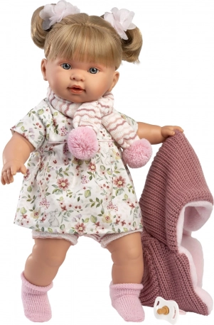 Dukken Llorens Alexandra er et smukt legetøj til piger, der kombinerer et realistisk udseende med interaktive elementer. Den er udstyret med en blød stofkrop, hvilket sikrer en behagelig følelse under leg. Takket være håret over hele hovedet virker den meget autentisk.