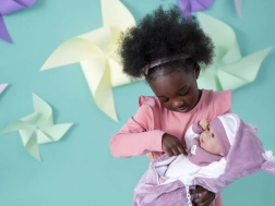 Denne fantastiske realistiske dukke er designet til at give en ægte oplevelse af pleje af en baby. Når man trykker på brystet, begynder den at sige “mama”, “papa” og udsende realistiske grådelyde, hvilket øger dens autenticitet.
