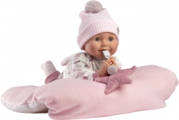 Mød den blinkende og talende dukke, der er ideel til børn fra 3 år. Denne dukke har en blød stofkrop, og dens dele, som arme og ben, er fastgjort med led, hvilket muliggør nem posering og endda sidning. Ved at trykke på brystet begynder den at sige "mama", "papa" og lave realistiske babygrædelyde.