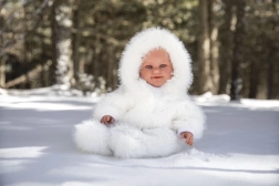 Når man trykker på brystet, begynder den at grine og sige “mama”, “papa”.