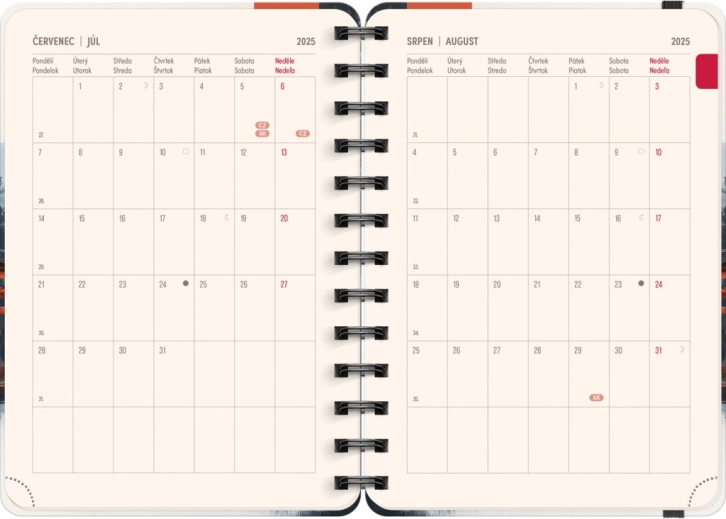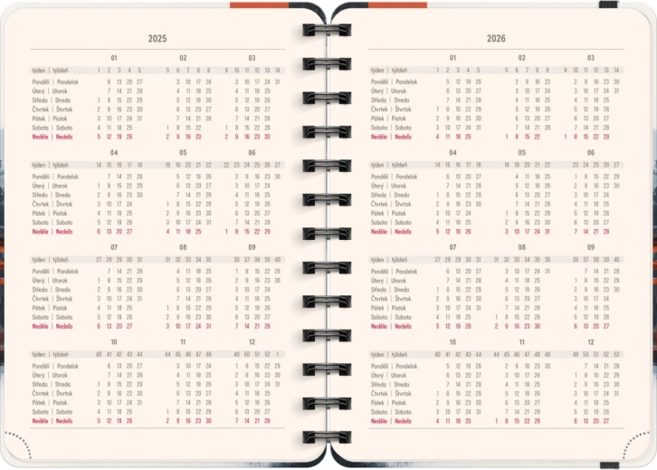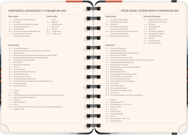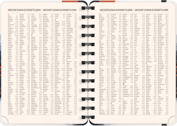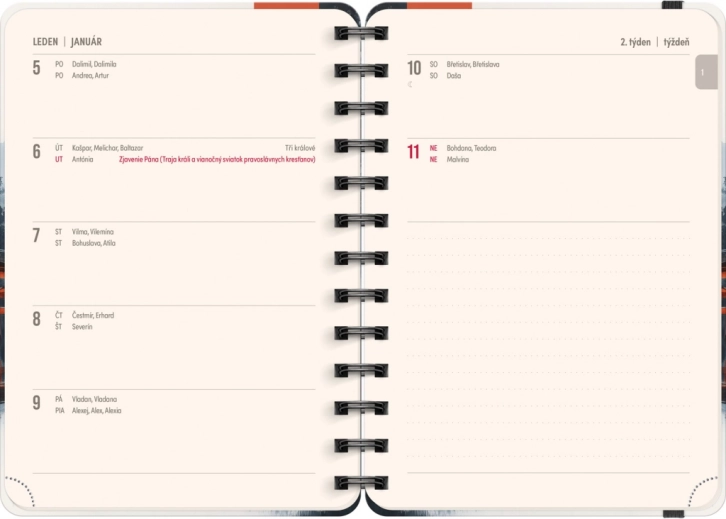 - Tjekkisk-slovakisk ugentlig linjekalender med navne og helligdage.