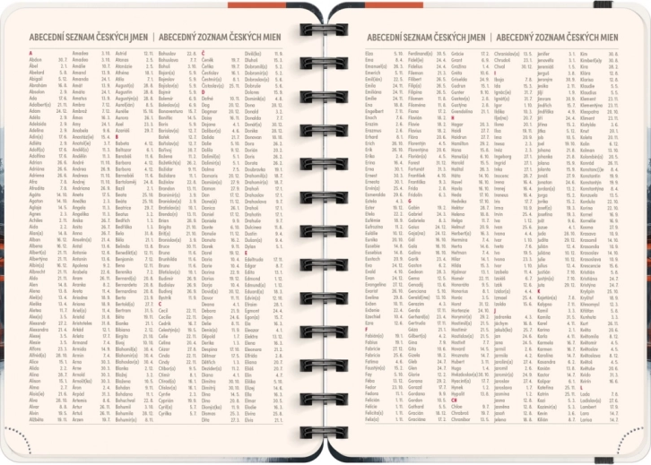 - Tjekkisk-slovakisk ugentlig linjekalender, navneliste, plads til noter