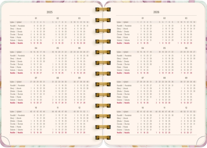 Spiral 18-måneders dagbog Petito Pink marmor 2025/2026