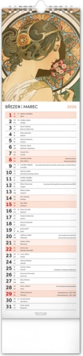 Oplev skønheden i jugendstilen med vægkalenderen Alfons Mucha 2026. Nyd hver måned en unik reproduktion af ikoniske værker fra den berømte tjekkiske kunstner.