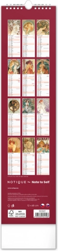 - Unikke reproduktioner – hver side af kalenderen imponerer med detaljerede gengivelser af Alphonse Muchas værker.