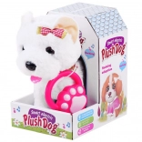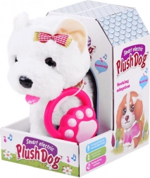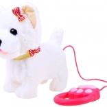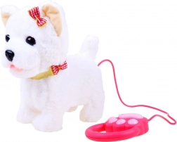 Den søde interaktive plyshund i snor er det perfekte første “kæledyr” for børn. Den kan gå, gø, logre med halen og pive, reagerer på berøring og kælen og giver en realistisk oplevelse af at passe et kæledyr. Drives af tre AA-batterier (medfølger ikke) og er velegnet til børn fra 3 år.