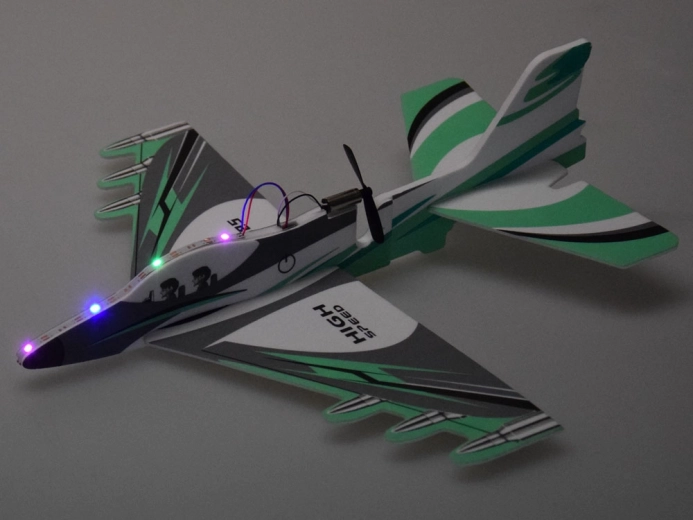 Dette letvægtsskumfly er lavet af kvalitets skum, og de brede vinger sikrer optimal løfteevne, så det let kan svæve i luften. Med den interessante farvekombination ser det usædvanligt ud, og det blinkende LED-lys giver en fantastisk visuel effekt, især om aftenen.