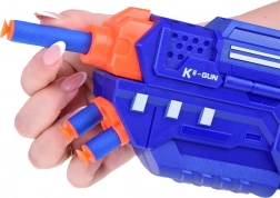 Legetøjspistolen kombinerer sjov og sikkerhed takket være skumprojektiler og gelkugler, hvilket sikrer beskyttelse under legen.