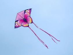 Farverig drage formet som en sommerfugl, ideel til sjove stunder i den friske luft med familien. Den er let at styre og velegnet selv til yngre børn takket være sin lette konstruktion og nemme brug.