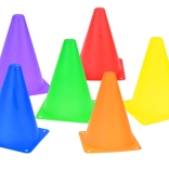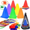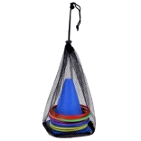 Dette sæt indeholder kegler og ringe i levende farver, der fanger opmærksomheden og sikrer sjov ved leg. De er perfekte til at markere legepladser eller stationer.