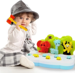 Takket være lys- og lydeffekter, som aktiveres under spillet, vil børnene være underholdt i lang tid. Enheden drives af batterier, hvilket muliggør trådløs leg hvor som helst. I pakken findes en sikker, let hammer perfekt tilpasset små børnehænder, lavet af sikre og holdbare materialer. Det farverige og venlige design samt de søde dyrefigurer gør spillet meget populært blandt børn og gør det også til en glimrende gave.