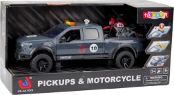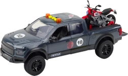 Den store pickup-model med motorcykel er et legetøj designet til de yngste bilentusiaster. Pickuppen har åbnelige døre og bagklap, hvilket gør det nemt at laste motorcyklen og giver et autentisk udseende. Børn kan lege redningsmissioner eller offroad-løb takket være muligheden for at placere og tage motorcyklen af pickupens lad.
