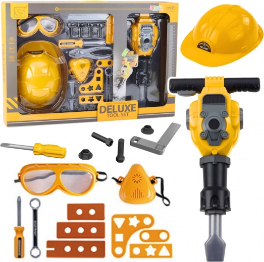 Den største attraktion i sættet er den realistiske pneumatiske hammer, som vibrerer og laver lyde som rigtigt værktøj, når der indsættes batterier. Denne lyd- og vibrationseffekt øger realismen og legeglæden, så børn kan opleve, hvordan det føles at være en rigtig operatør af byggemaskiner.