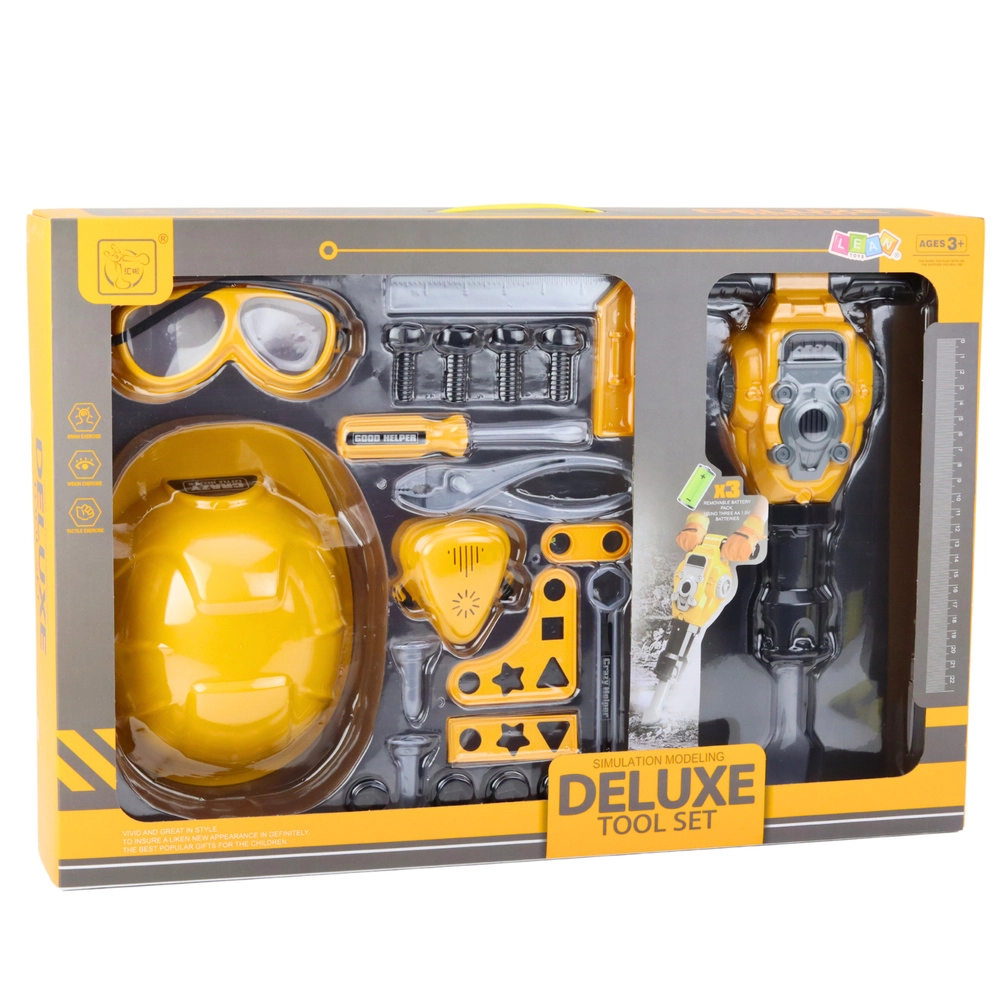 Deluxe Tool Set er et komplet, realistisk og attraktivt legetøj til børn, der elsker at iagttage de voksnes verden og drømmer om deres eget værkstedsområde. Dette børnesæt indeholder 21 dele, som giver barnet mulighed for at leve sig ind i rollen som bygger eller ingeniør.