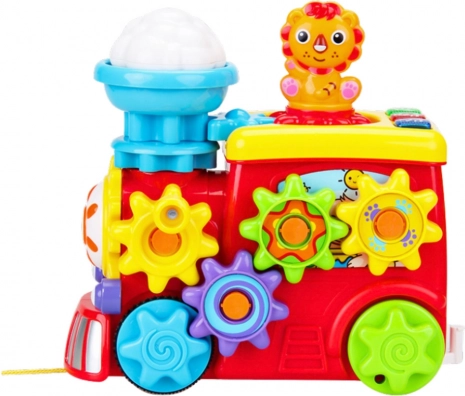 Det interaktive lokomotiv er designet ikke kun til at underholde, men også til at udvikle finmotorik, hånd-øje-koordination og dit barns nysgerrighed. Lokomotivet er udstyret med roterende tandhjul, som barnet kan sætte i bevægelse, hvilket fremmer præcise håndbevægelser og lærer grundlæggende mekaniske sammenhænge. Når knapperne trykkes, aktiveres lys- og lydeffekter, der stimulerer barnets hørelse og syn.