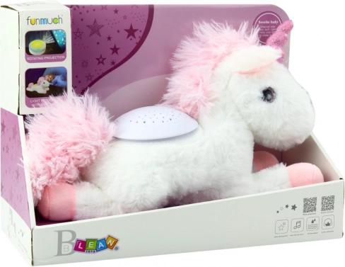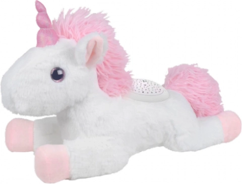 Enhjørningen er udstyret med en blid lysprojektion og beroligende melodier, som tilsammen skaber en afslappende lydkulisse egnet til at falde i søvn. Lyset fungerer som en natlampe, mens musikken er tilpasset de yngste børns følsomhed. Ved at holde knappen nede aktiveres hele det beroligende modul, som støtter barnet både om natten og under dagslure.