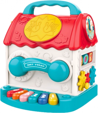 Den interaktive terning i husform er et enestående læringslegetøj, som giver børn et aktivitetscenter. Fra formsortering til at fange orme med en magnetisk spætte tilbyder terningen en række interaktive funktioner, der engagerer børn på flere niveauer.