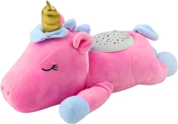 Den plysede rosa enhjørning med projektor er et sødt og funktionelt legetøj, der fanger opmærksomheden med sit blide rosa design med stjerner og måner på ørerne og benene. Øjnene er af skinnende plast, og næsen er broderet, hvilket gør den ekstra særlig.