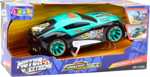 Racerbilen er udstyret med to funktionsknapper. Den første knap aktiverer en spektakulær acceleration med løft af bilens front, hvilket skaber effekten af kørsel på de to baghjul, og samtidig aktiveres turbofunktionen, som giver ekstra dynamik.