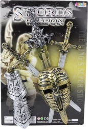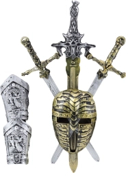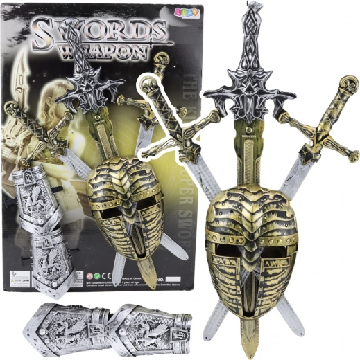 Med dette riddersæt kan børn blive tapre krigere. Takket være den stiliserede maske får de et ridderligt udseende og vil føle sig som i middelalderen. Sættet indeholder tre sværd i forskellige størrelser, en dekorativ maske og to håndledsbeskyttere, som giver det samlede look en realistisk ridderstil.