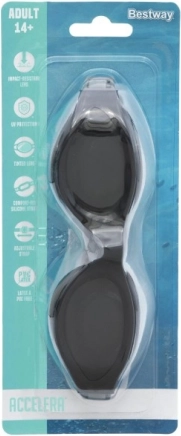 Oplev krystalklart udsyn under overfladen med BESTWAY svømmebriller i blå. De holdbare polykarbonatlinser med UV-filter beskytter synet mod solen, mens antifog-behandlingen forhindrer dug for klart udsyn ved hvert tag. Den bløde tætning og den behagelige silikonerem giver stabilitet og komfort selv ved længere svømmeture.