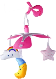 Derudover giver muligheden for at afspille en rolig melodi, der ledsager den langsomme, jævne rotation af legetøjet, en følelse af tryghed og gør det lettere for barnet at falde i søvn. Mobilens mekanisme tillader også rotationsbevægelse uden lyd, så den kan tilpasses forskellige situationer – både til leg i dagtimerne og til ro om aftenen.