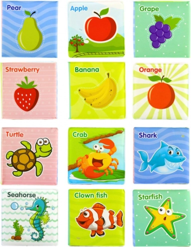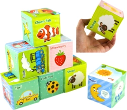 Terningerne indeholder forskellige billeder – bogstaver, tal eller ord på engelsk, hvilket understøtter barnets sproglige og kognitive udvikling. Hver terning er designet til at stimulere sanserne og udvikle finmotorikken, så børn kan stable, klemme, kaste og udforske forskellige mønstre og farver.