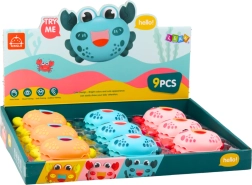 Krabbens design med et smilende udtryk og store øjne tiltrækker børns opmærksomhed og gør legen sjovere.