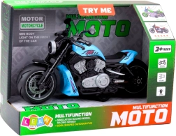 Legetøjet har indbyggede lys- og lydeffekter, som aktiveres ved at trykke på en let tilgængelig knap. Børn hører motorlyde og ser blinkende lys foran på motorcyklen. Disse interaktive elementer fanger opmærksomheden, stimulerer barnets sanser og beriger den daglige leg.