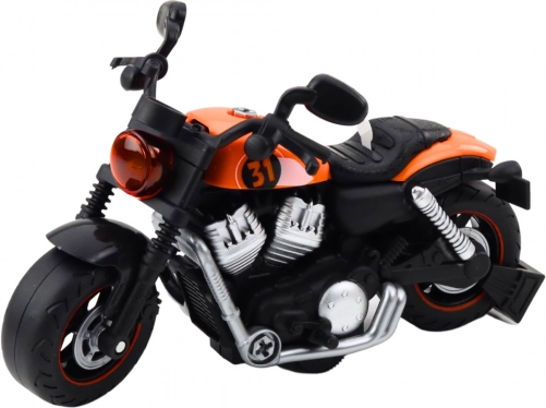 Takket være den intense orange farve skiller motorcyklen sig ud blandt andre legetøj og tilføjer et moderne præg. Fremstillet af holdbar plast er den sikker for børn, og de lette dele gør monteringen nem. Sættet indeholder AG13-batterier for øjeblikkelig leg.